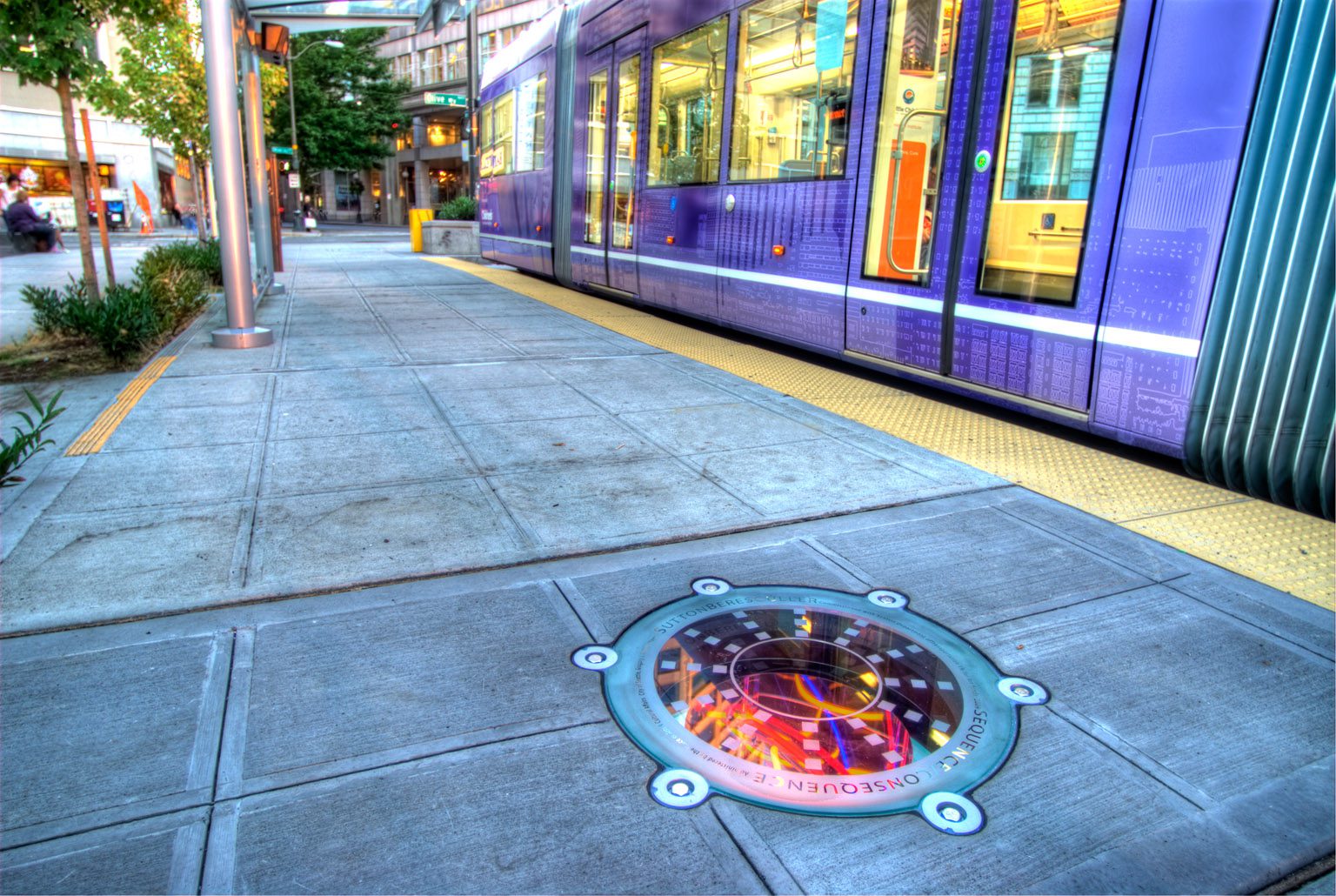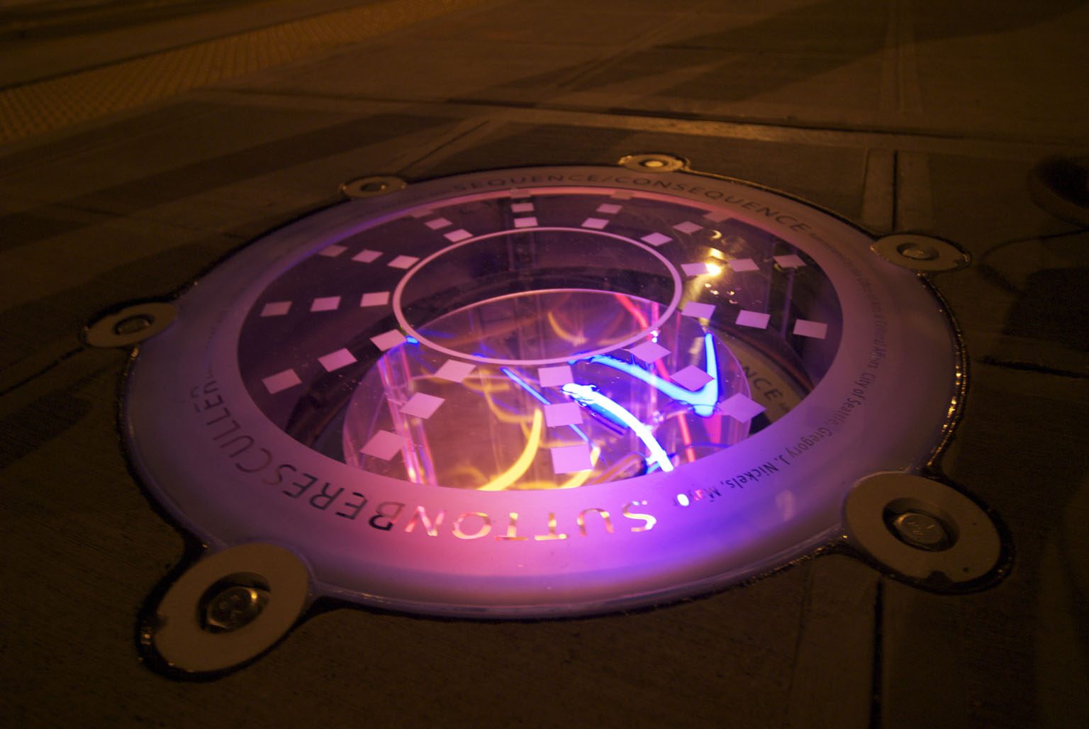 At McGraw Square Park in South Lake Union, comprehensive repairs to the mechanical and lighting components were completed for the 2009 neon sculpture Sequence/Consequence by artist trio John Sutton, Ben Beres, and Zac Culler. It’s not often that you see neon light emanating from the ground. This bold installation greets travelers’ departing and arriving on the South Lake Union streetcar.