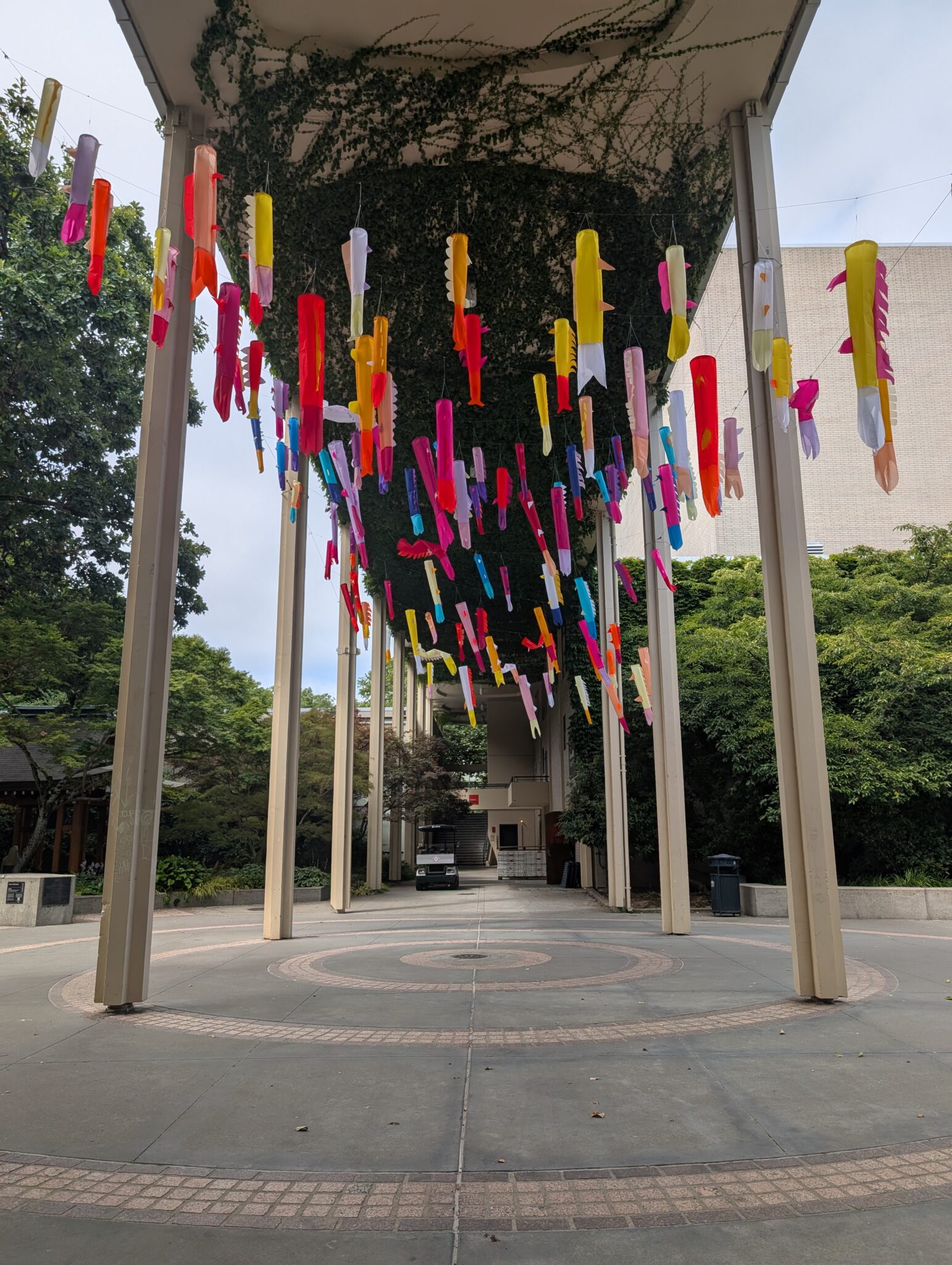 - Teruko Nimura installed Koi No Taki Nobori (Carp Climbing a Waterfall) in the Founder’s Court, where the vibrant school of koi fish reflect the kites commonly flown at Japanese Children’s Day festivals and symbolize perseverance.